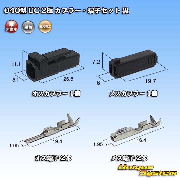 [Mitsubishi Cable] (current [Furukawa Electric]) 040-type UC non-waterproof 2-pole coupler & terminal set (black)
