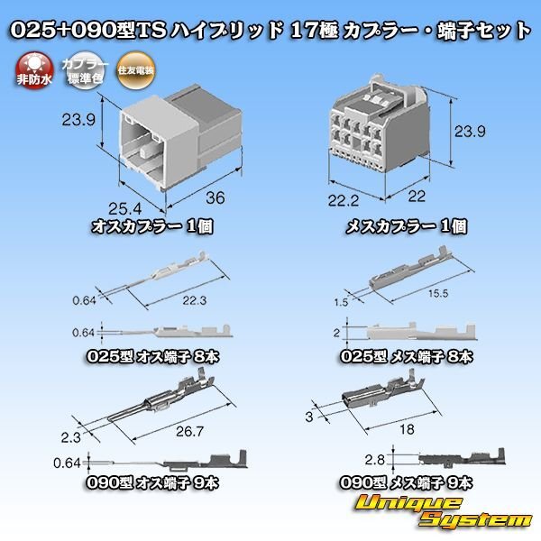 [Sumitomo Wiring Systems] 025 + 090-type TS hybrid non-waterproof 17-pole coupler & terminal set