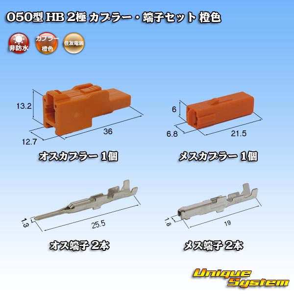 [Sumitomo Wiring Systems] 050-type HB non-waterproof 2-pole coupler & terminal set (orange) [SM050HB-2PS-OR]