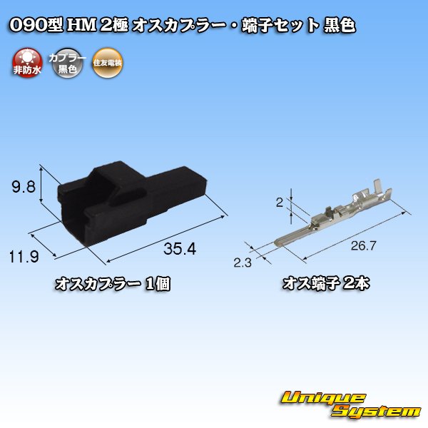 [Sumitomo Wiring Systems] 090-type HM non-waterproof 2-pole male-coupler & terminal set (black)