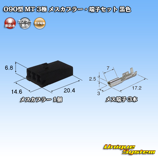 [Sumitomo Wiring Systems] 090-type MT non-waterproof 3-pole female-coupler & terminal set (black)