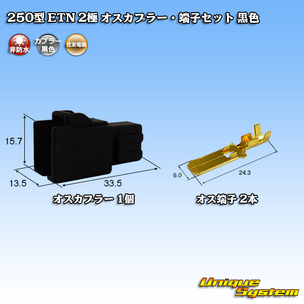 [Sumitomo Wiring Systems] 250-type ETN non-waterproof 2-pole male-coupler & terminal set (black)