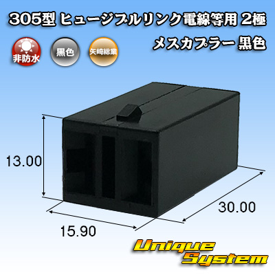 [Yazaki Corporation] 305-type (for fusible link electric wires, etc) non-waterproof 2-pole female-coupler (black) [YZ305-F-2PF-BL]