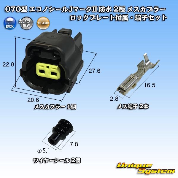 [TE Connectivity] AMP 070-type ECONOSEAL-J Mark II waterproof 2-pole female-coupler with lockplate & terminal set type-1