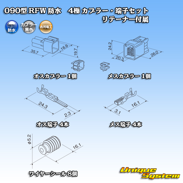 [Furukawa Electric] 090-type RFW waterproof 4-pole coupler & terminal set (black) with retainer