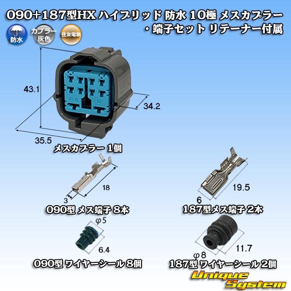 [Sumitomo Wiring Systems] 090 + 187-type HX hybrid waterproof 10-pole female-coupler & terminal set with retainer