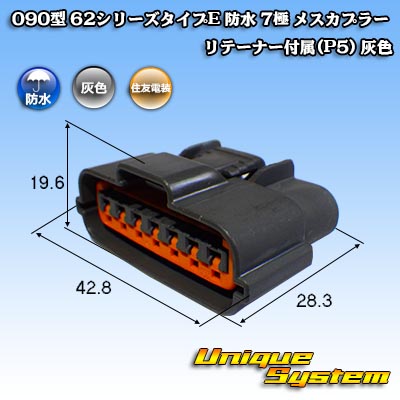 [Sumitomo Wiring Systems] 090-type 62 series type-E waterproof 7-pole female-coupler with retainer (P5) (gray)