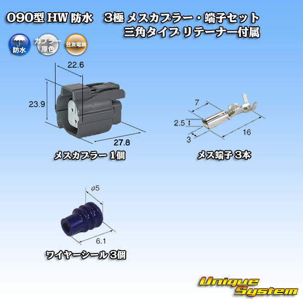 [Sumitomo Wiring Systems] 090-type HW waterproof 3-pole female-coupler & terminal set triangle-type with retainer [W-SM090HW-3PFS-T]