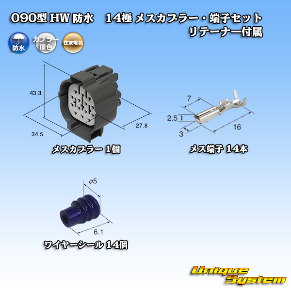 [Sumitomo Wiring Systems] 090-type HW waterproof 14-pole female-coupler & terminal set with retainer