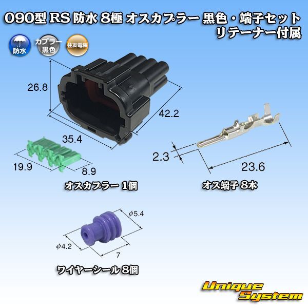 [Sumitomo Wiring Systems] 090-type RS waterproof 8-pole male-coupler (black) & terminal set with retainer