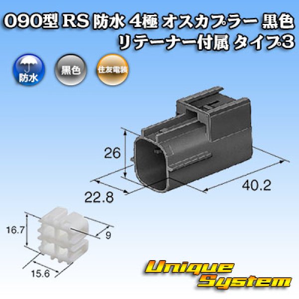 [Sumitomo Wiring Systems] 090-type RS (standard-type-2) waterproof 4-pole male-coupler (black) with retainer type-2