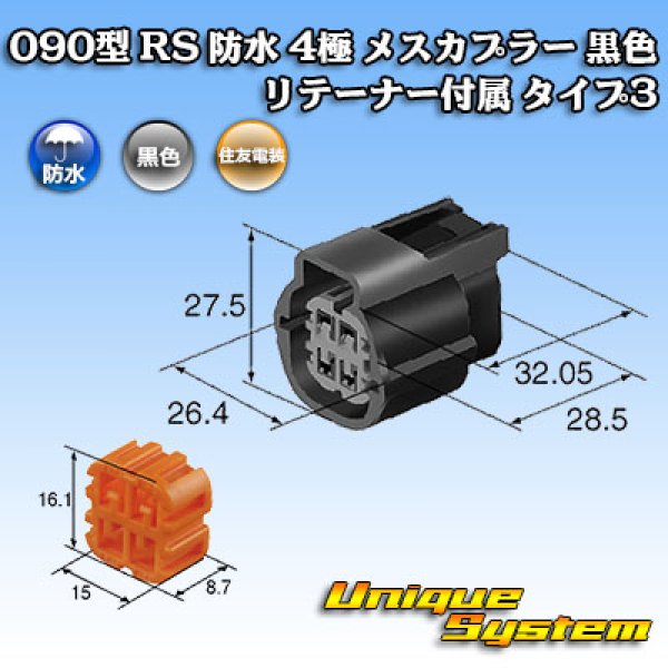 [Sumitomo Wiring Systems] 090-type RS (standard-type-2) waterproof 4-pole female-coupler (black) with retainer type-2