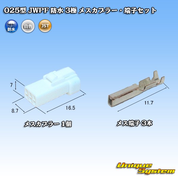 [JST Japan Solderless Terminal] 025-type JWPF waterproof 3-pole female-coupler & terminal set (receptacle housing)