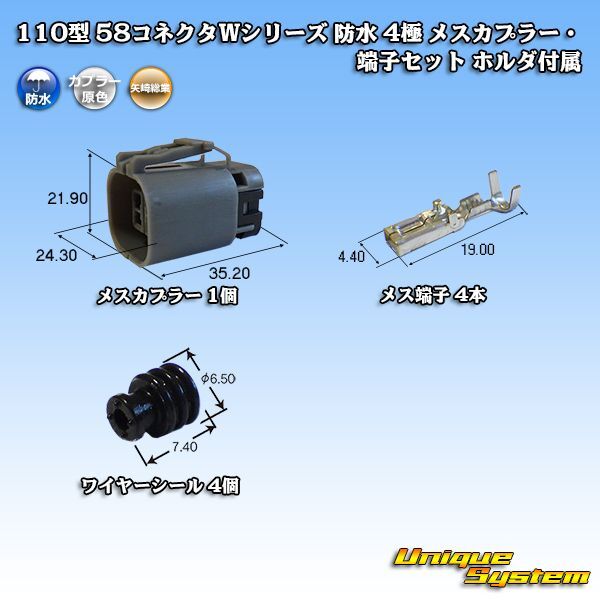 [Yazaki Corporation] 110-type 58-connector W series waterproof 4-pole female-coupler & terminal set (with holder) [W-YZ110W58-4PFS]
