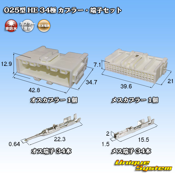 [Sumitomo Wiring Systems] 025-type HE non-waterproof 34-pole coupler & terminal set [SM025HE-34PS]