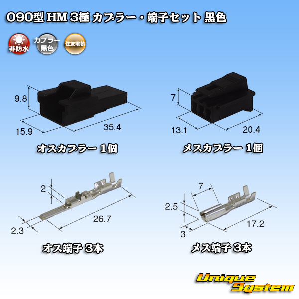 [Sumitomo Wiring Systems] 090-type HM non-waterproof 3-pole coupler & terminal set (black) [SM090HM-3PS-BL]