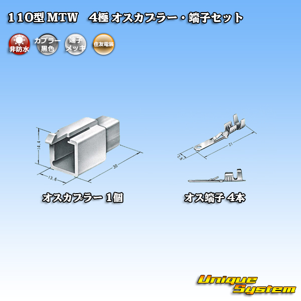 [Sumitomo Wiring Systems] 110-type MTW non-waterproof 4-pole male-coupler & terminal set (black) [SM110MTW-4PMS-BL]