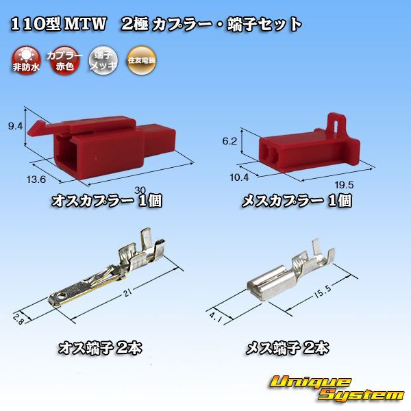 [Sumitomo Wiring Systems] 110-type MTW non-waterproof 2-pole coupler & terminal set (red) [SM110MTW-2PS-RE]