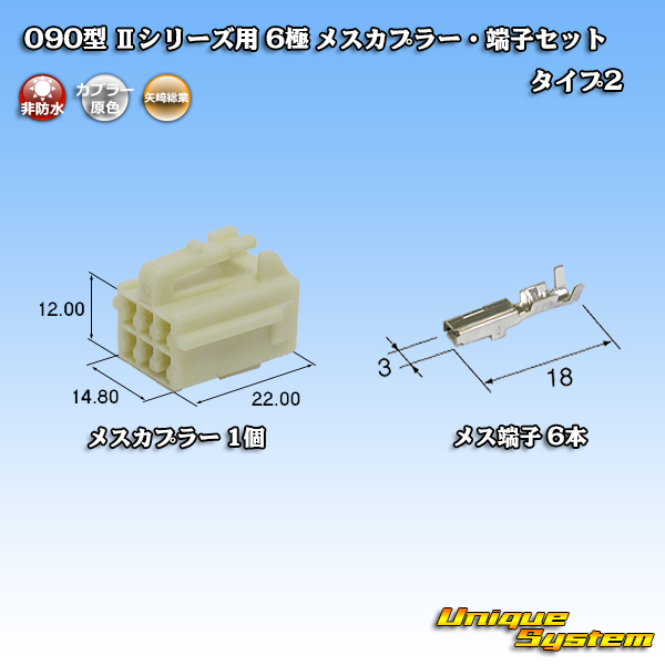 [Yazaki Corporation] 090-type II non-waterproof 6-pole female-coupler & terminal set type-2