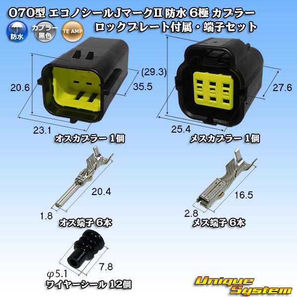 [TE Connectivity] AMP 070-type ECONOSEAL-J Mark II waterproof 6-pole coupler with lockplate & terminal set