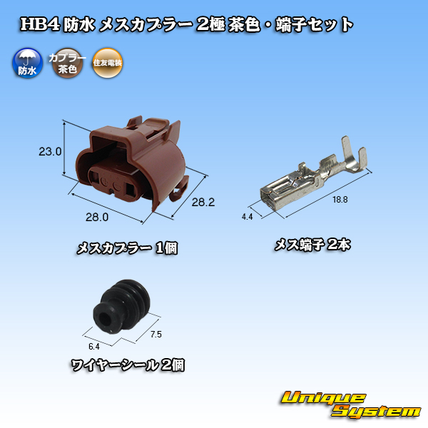 [Sumitomo Wiring Systems] HB4 waterproof female-coupler 2-pole (brown) & terminal set [SMHB-HB4-2PFS-BR]