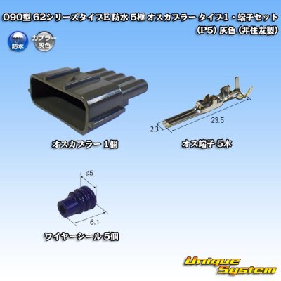 090-type 62 series type-E waterproof 5-pole male-coupler type-1 & terminal set (P5) (gray) (not made by Sumitomo) [W-SM09062E-5PMS-GR-P5-TY1]