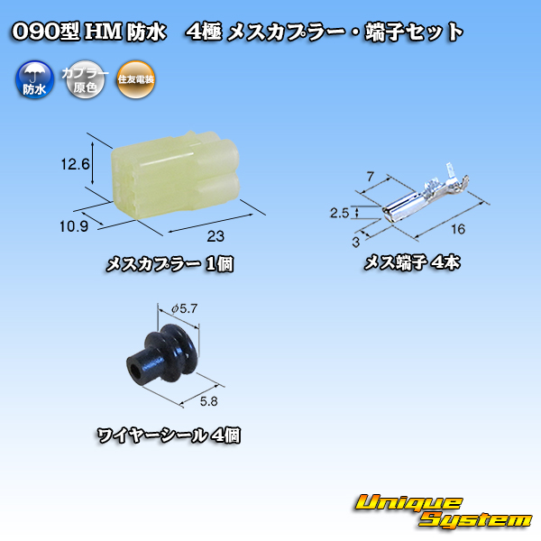 [Sumitomo Wiring Systems] 090-type HM waterproof 4-pole female-coupler & terminal set