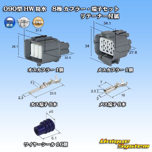 [Sumitomo Wiring Systems] 090-type HW waterproof 8-pole coupler & terminal set with retainer