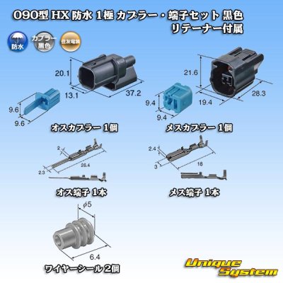 [Sumitomo Wiring Systems] 090-type HX waterproof 1-pole coupler & terminal set (black) with retainer