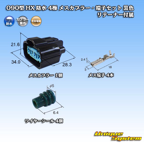 [Sumitomo Wiring Systems] 090-type HX waterproof 4-pole female-coupler & terminal set (black) with retainer
