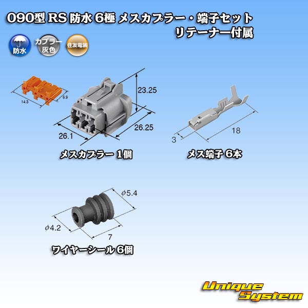 [Sumitomo Wiring Systems] 090-type RS waterproof 6-pole female-coupler & terminal set (gray) with retainer