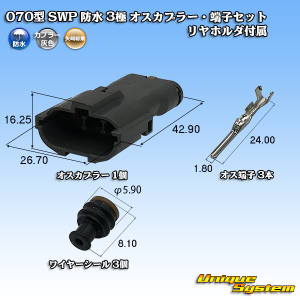 [Yazaki Corporation] 070-type SWP waterproof 3-pole male-coupler & terminal set (with rear holder)